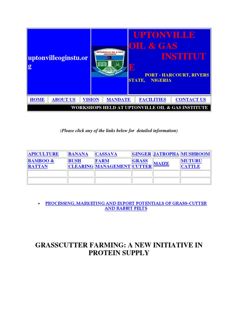 The company is a grasscutter company of choice in Nigeria. Grasscutter farming technology was introduced in Africa as an antidote to reduce hunting pressure on game species but vast majority of grasscutters consumed are still harnessed from the wild and.