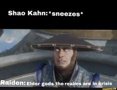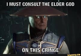 Explanation It was already a joke in the MK community with how very frequently Raiden almost always default to consulting with the Elder Gods. Of course as with all memes it has loads and loads of variations. If this is not a dank meme Downvote this comment.