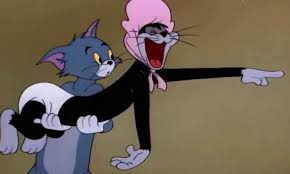 A new Tom Jerry video every Tuesday on Boomerang UK Youtube chann. She is scolding Tom who is hiding under some furniture. His only apparel is a white slip-on cloth.